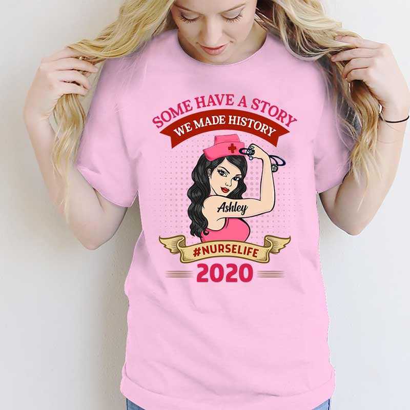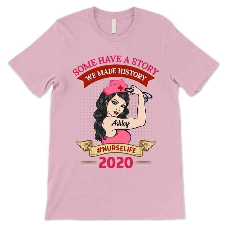 We Made History 2020 Nurse Strong Personalized Light Pink Shirt