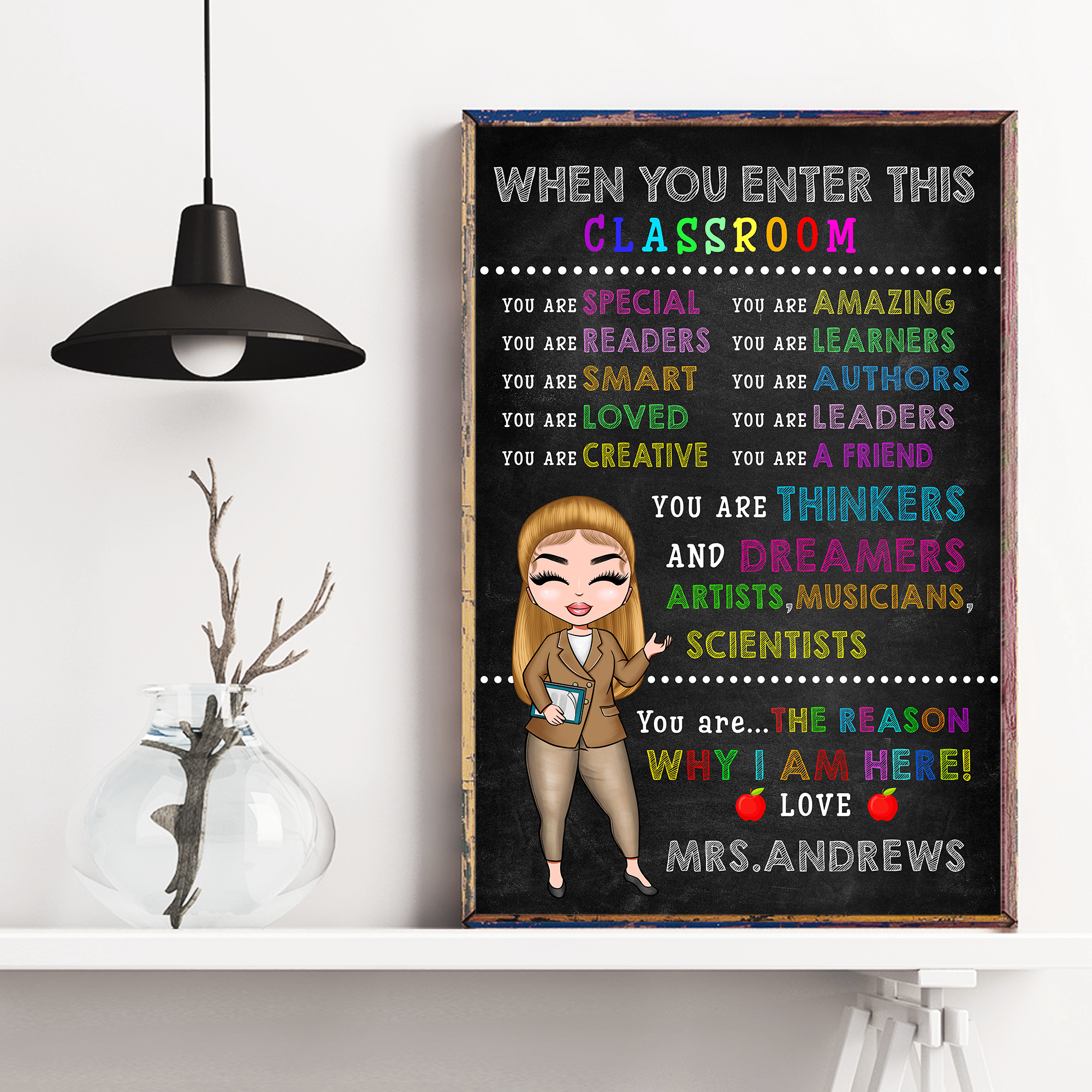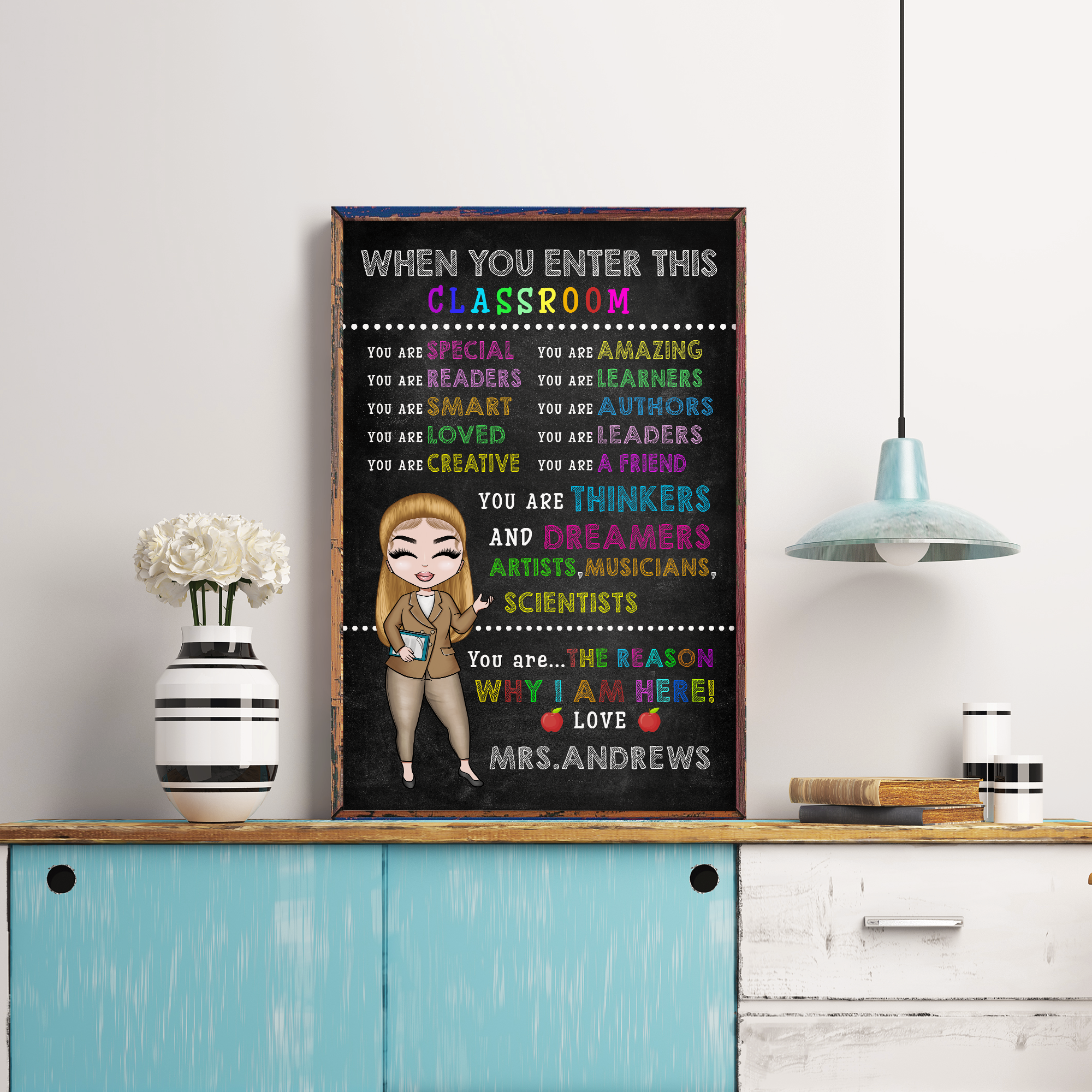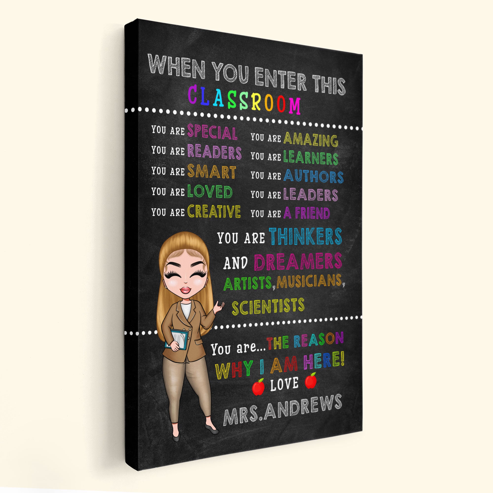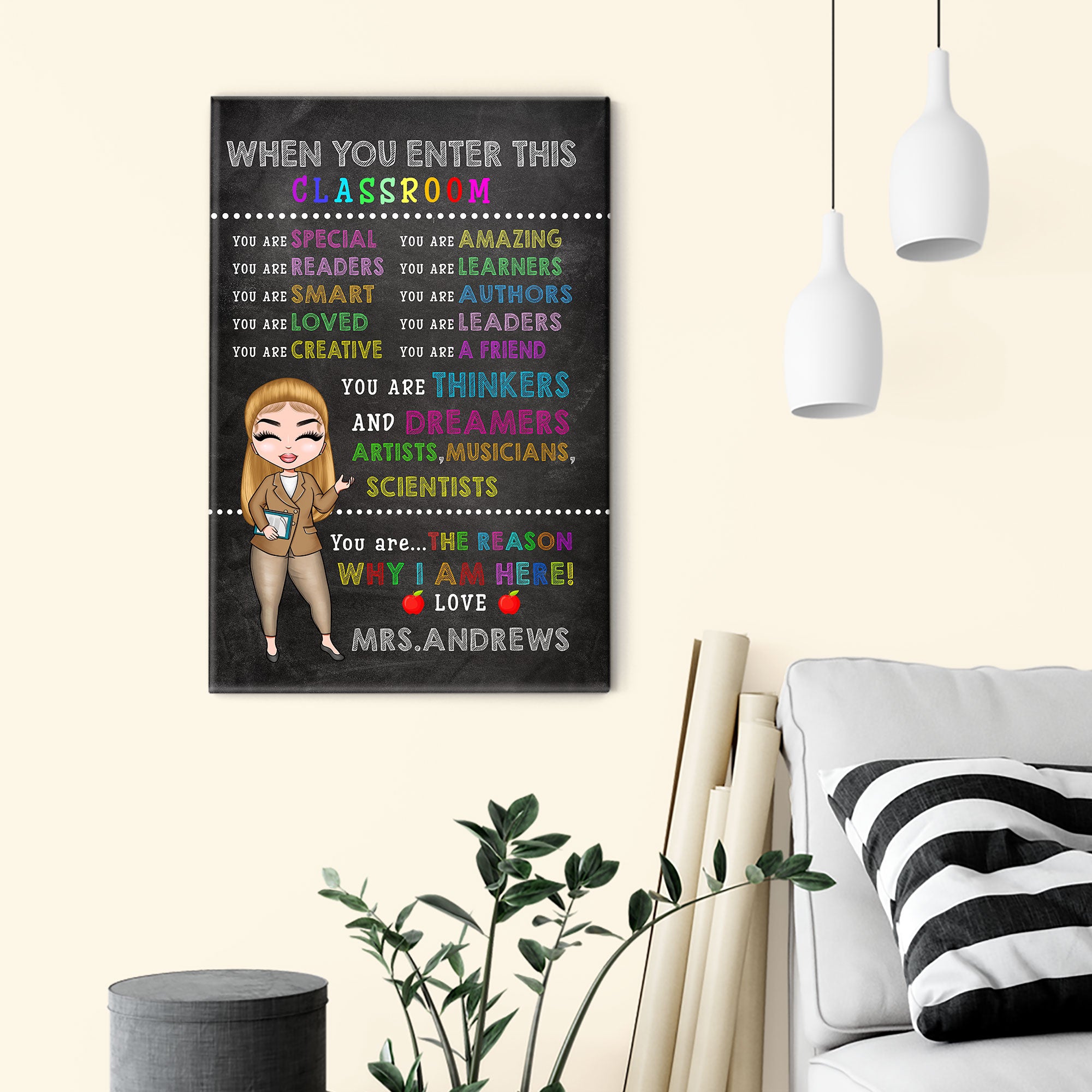 When You Enter This Classroom – Personalized Poster/Canvas – Gift For Teacher – Cartoon Teacher