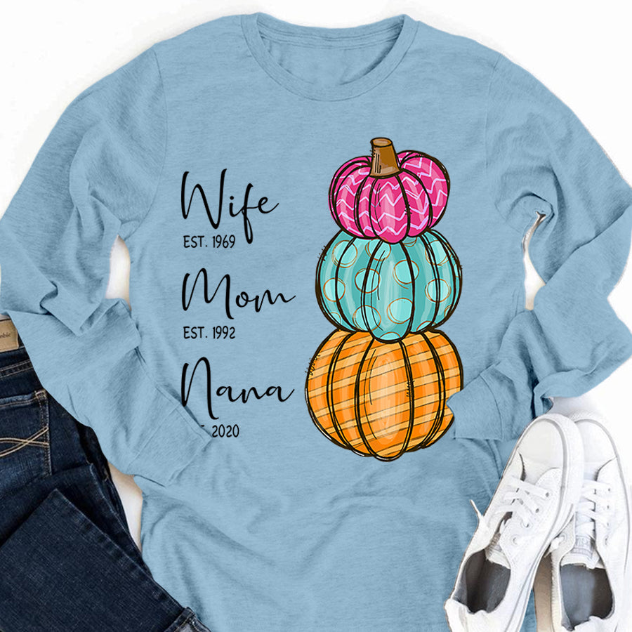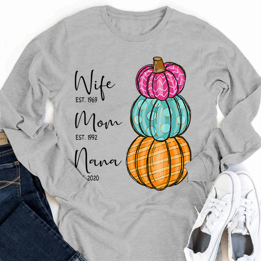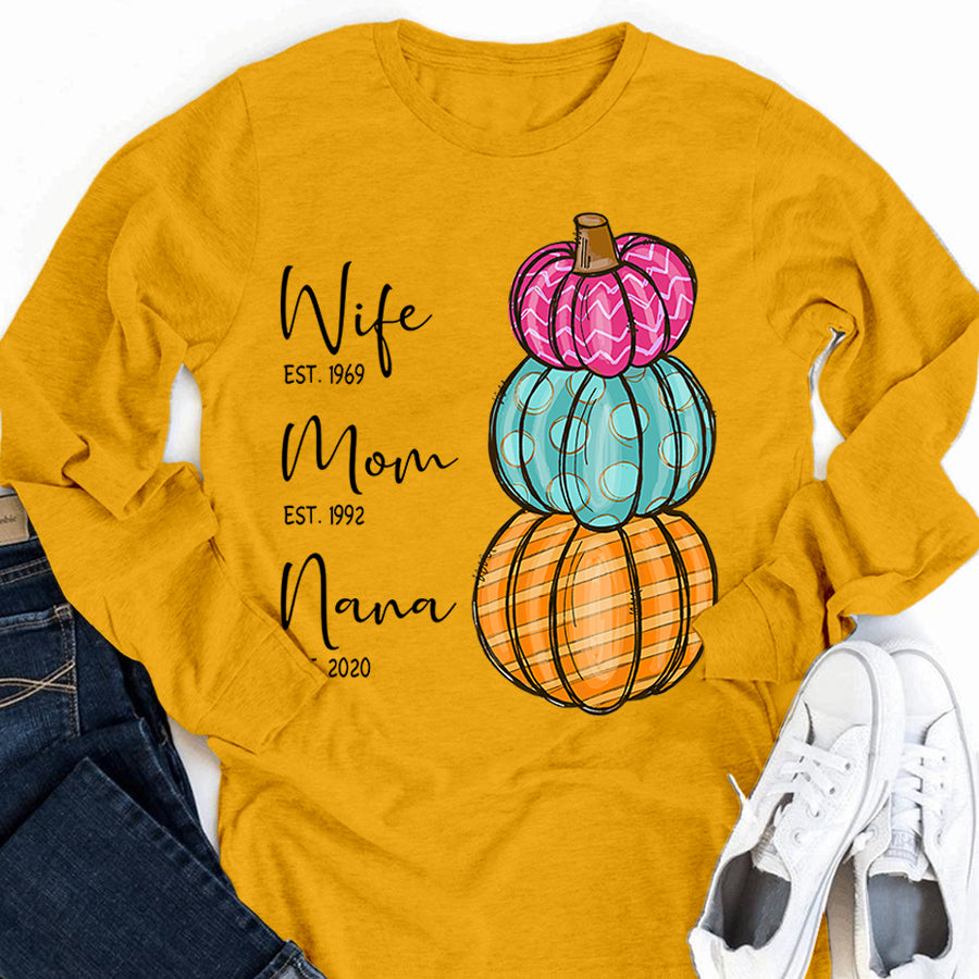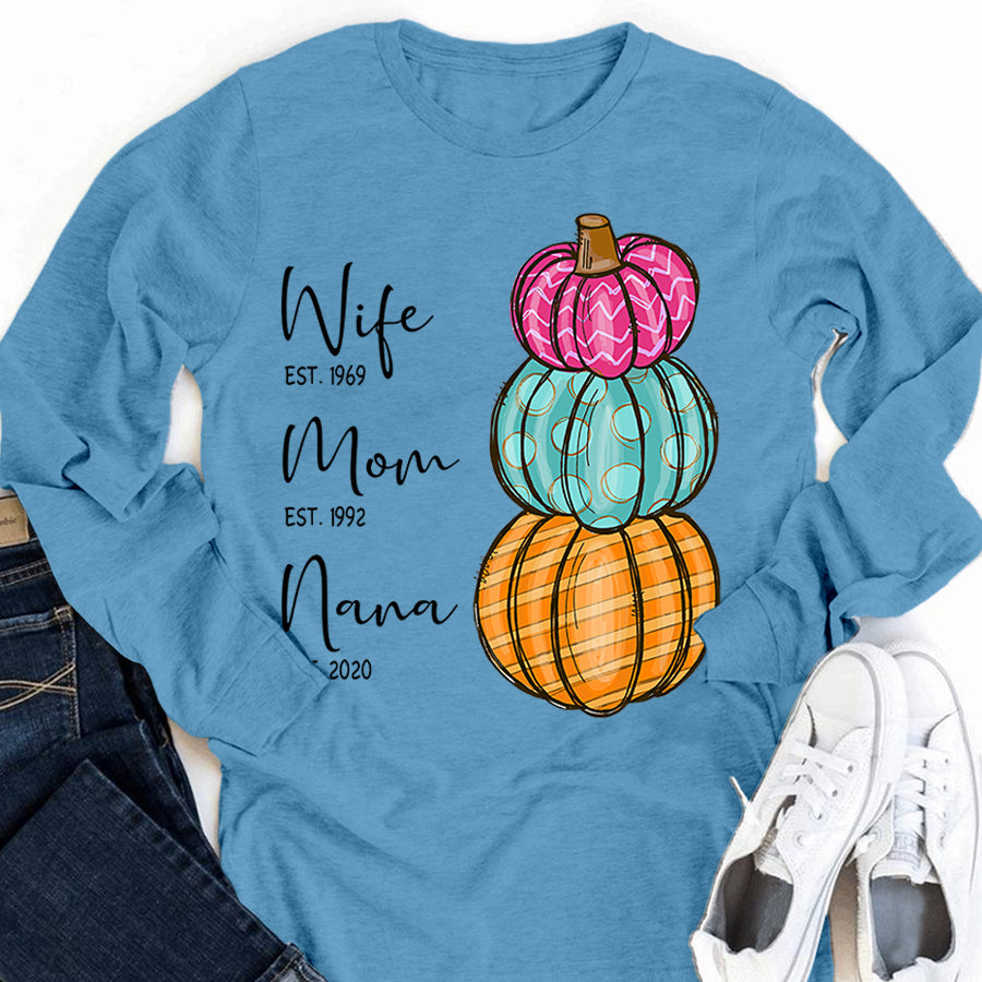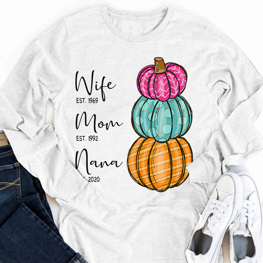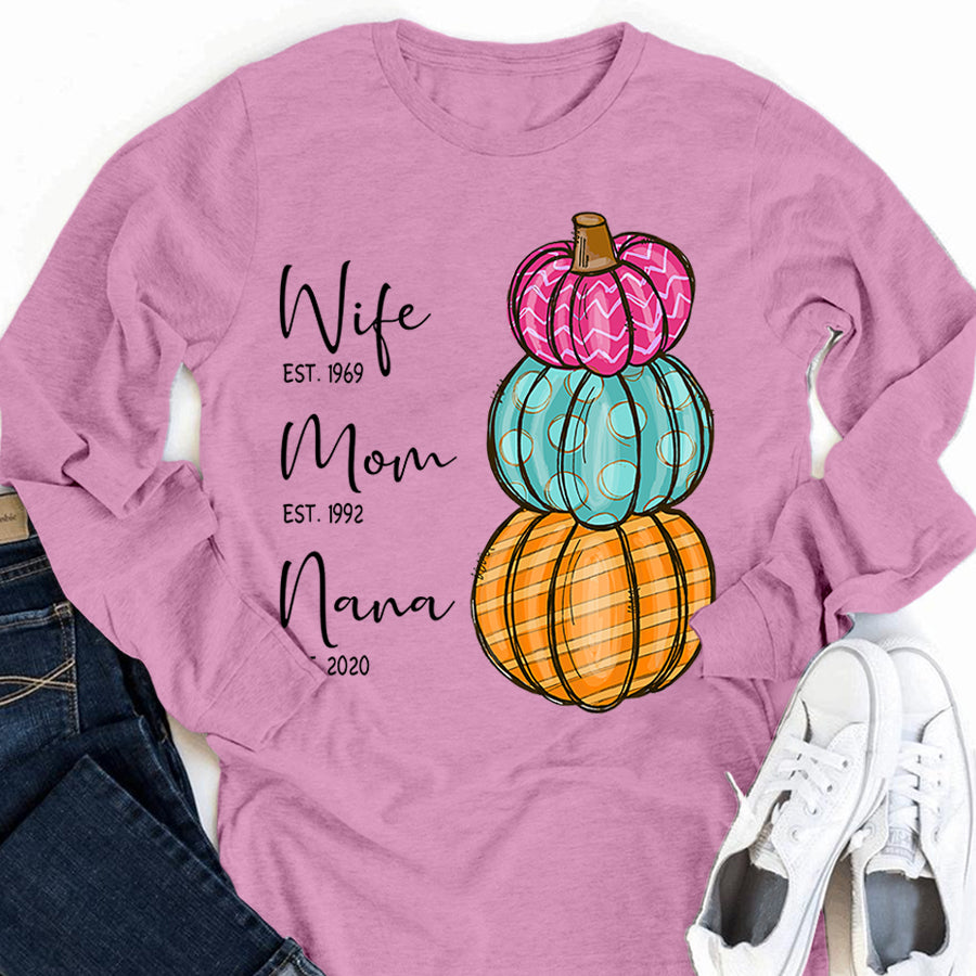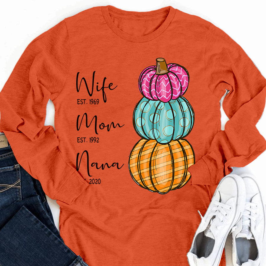 Wife – Mom – Grandma – Est – Pumpkin | Personalized Long Sleeve