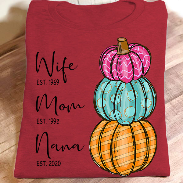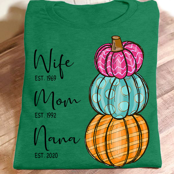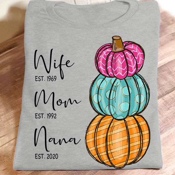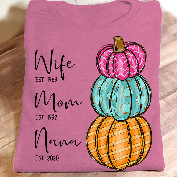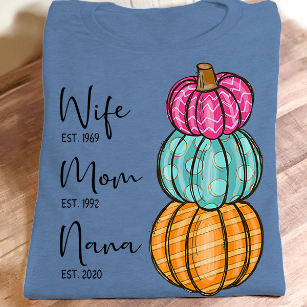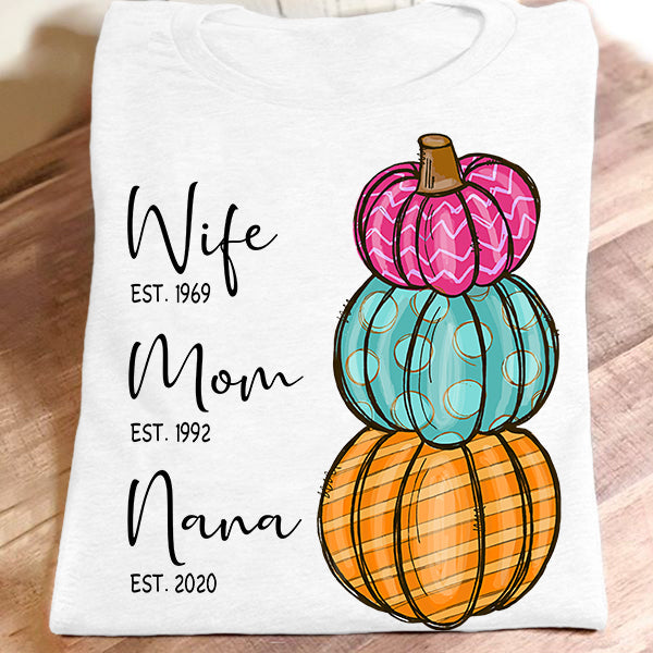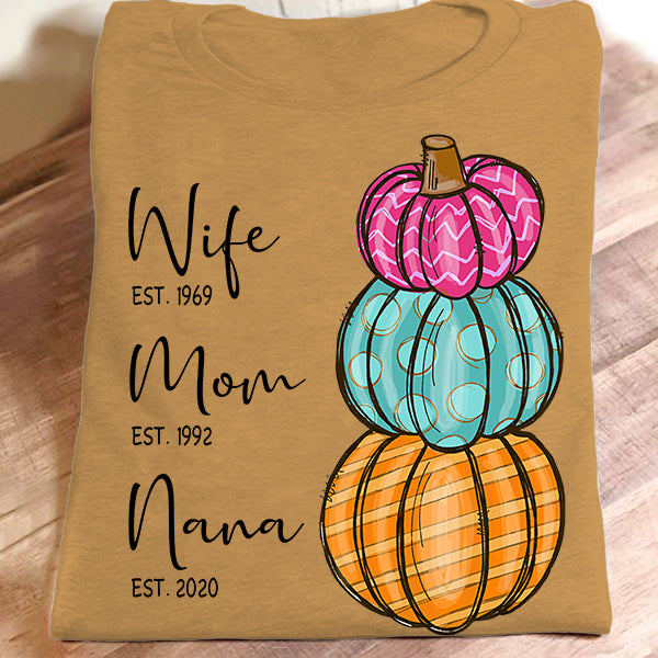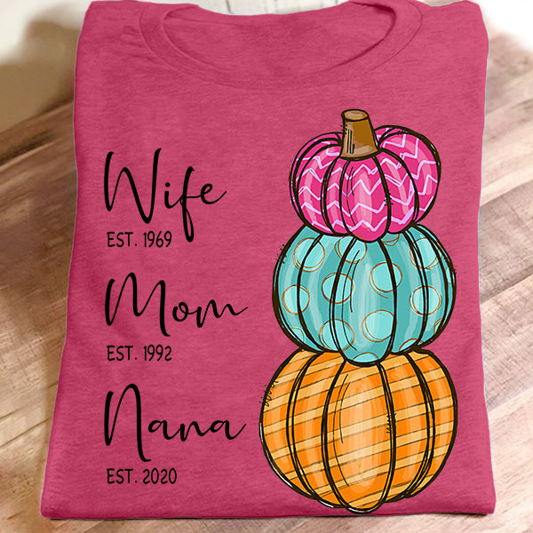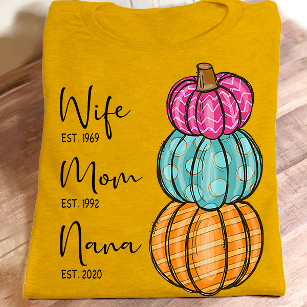 Wife – Mom – Grandma – Est – Pumpkin | Personalized T-Shirt