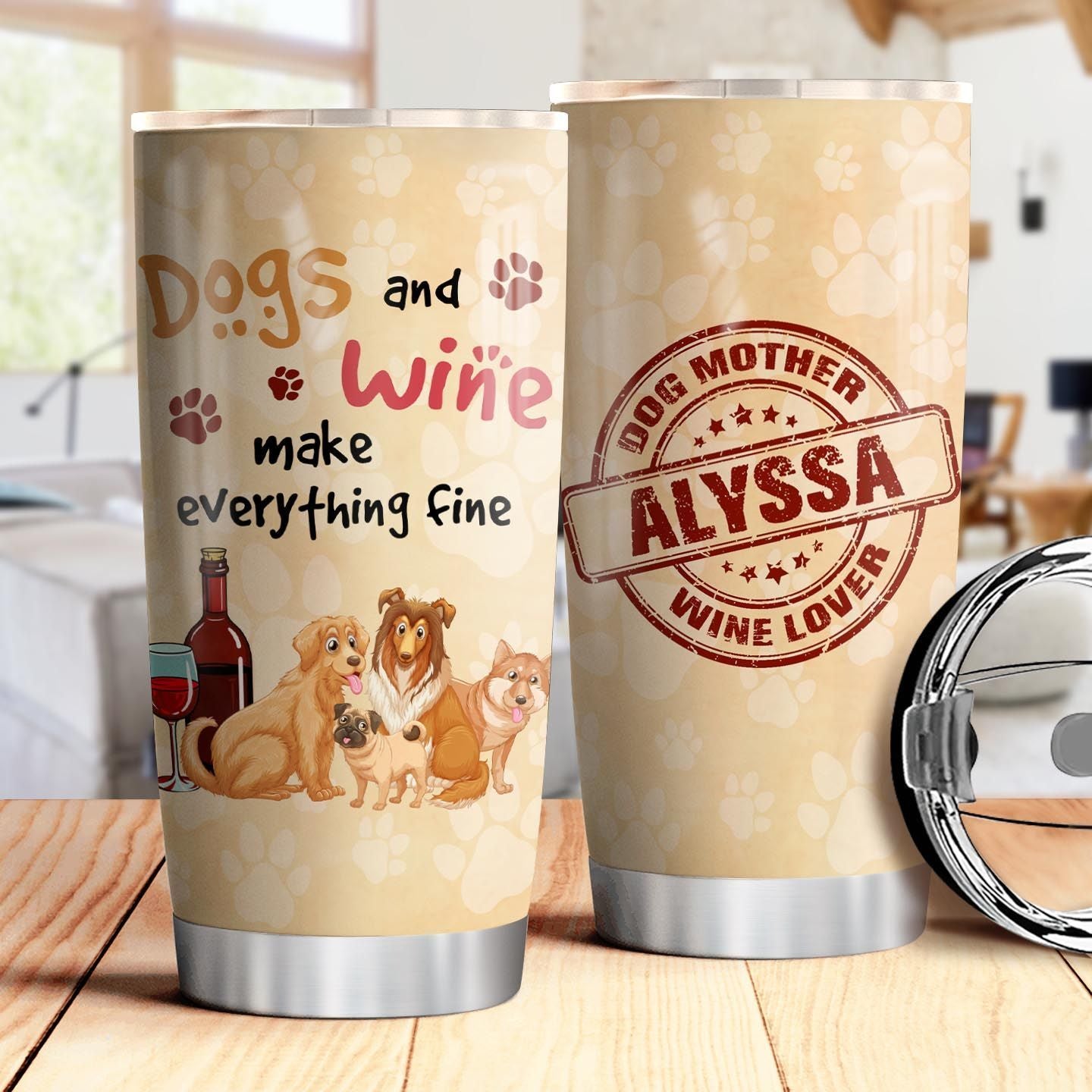 Wine And Dogs Personalized Thv1410011 Stainless Steel Tumbler
