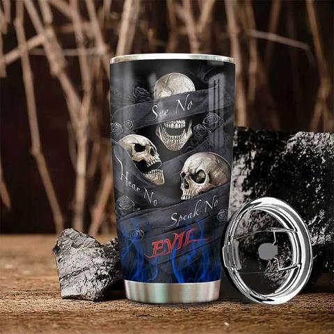 Wise Skull See No Hear No Speak No Kd2 Stainless Steel Tumbler, Personalized Tumblers, Tumbler Cups, Custom Tumblers