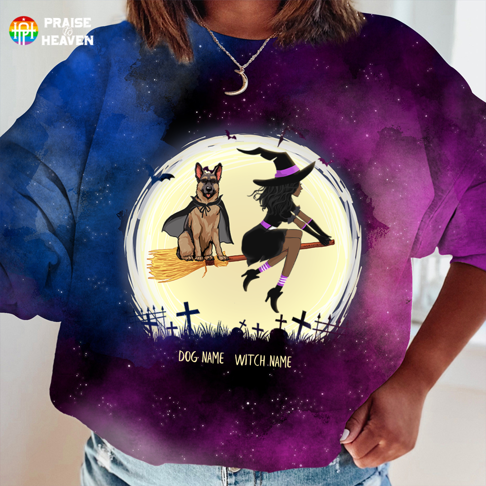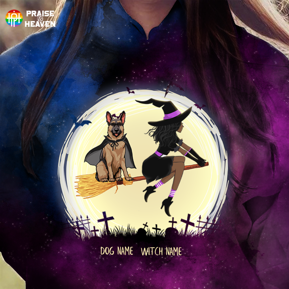 Witch And German Shepherd Personalized 3D Galaxy Shirt Sweatshirt Hoodie Ap323