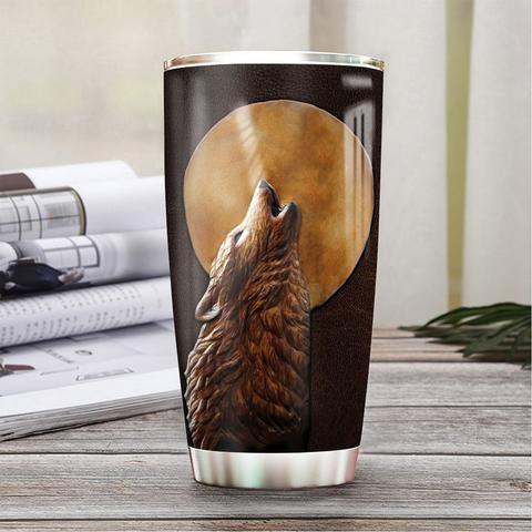 Wolf Leather Style Personalized Stainless Steel Tumbler, Personalized Tumblers, Tumbler Cups, Custom Tumblers