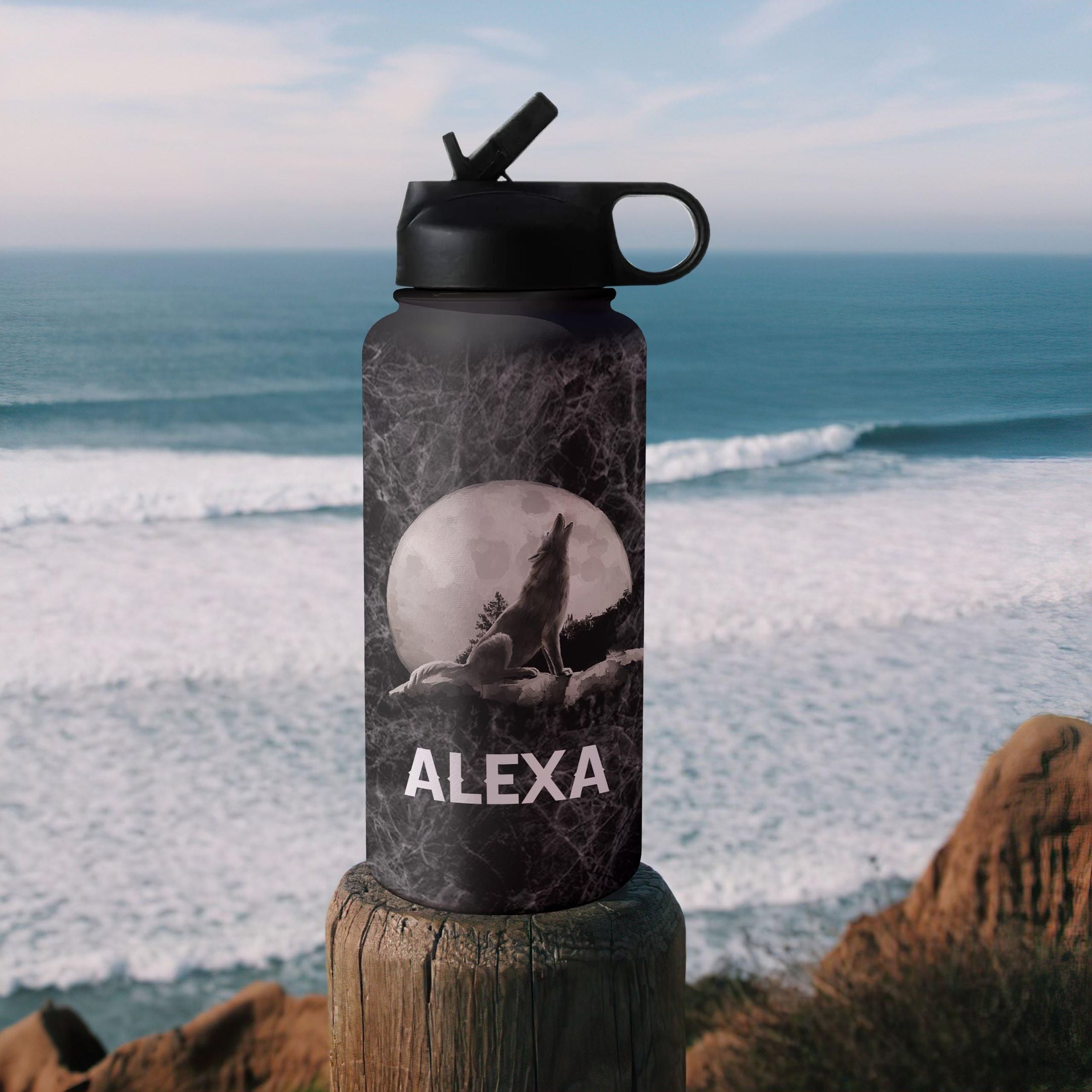 Wolf Personalized Tha2810036 Stainless Steel Bottle With Straw Lid