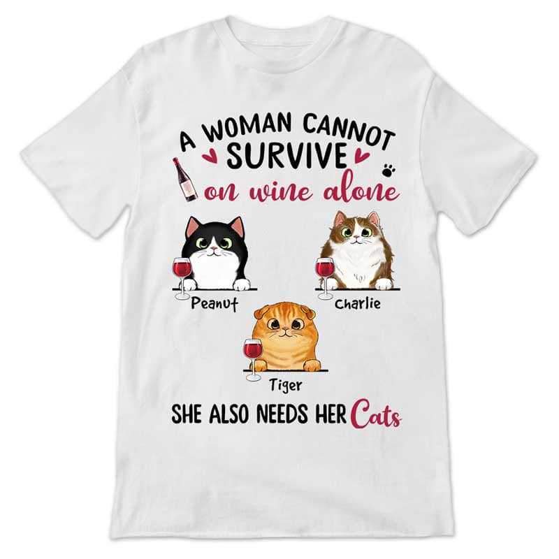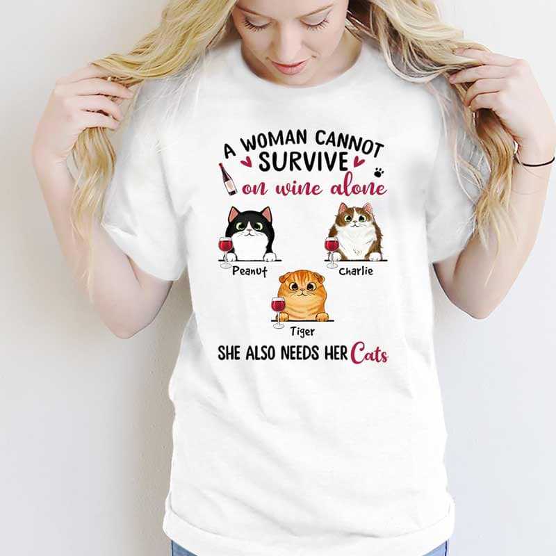 Woman Survive On Wine And Cats Personalized Shirt