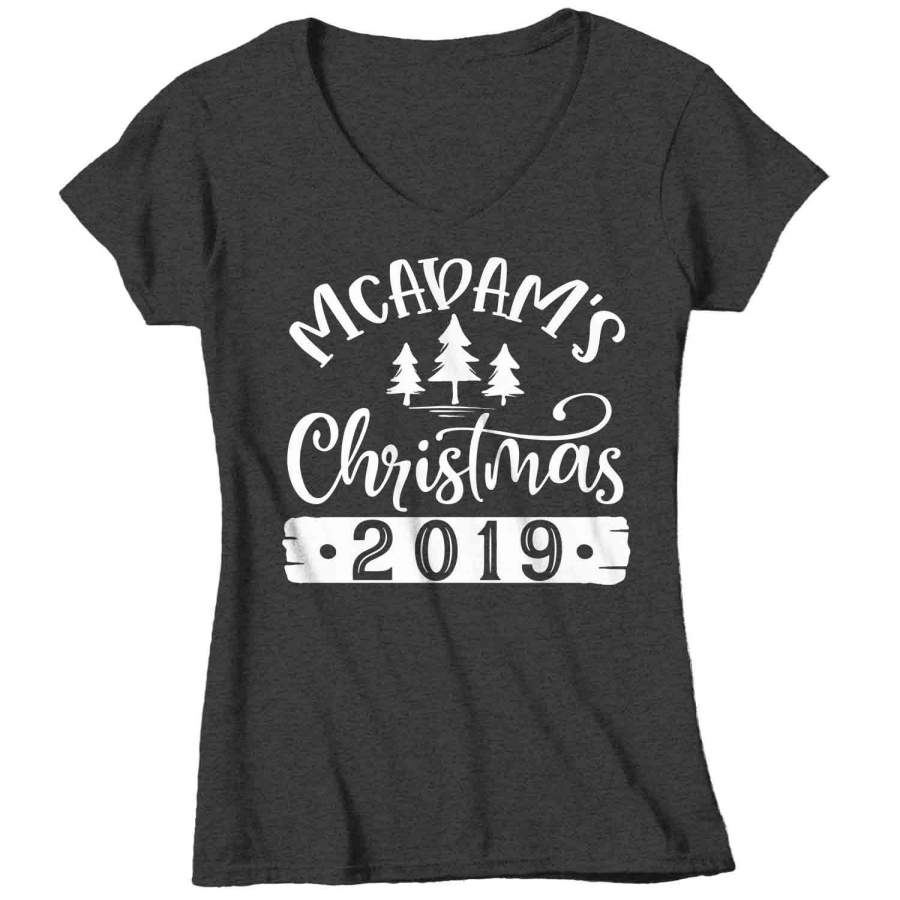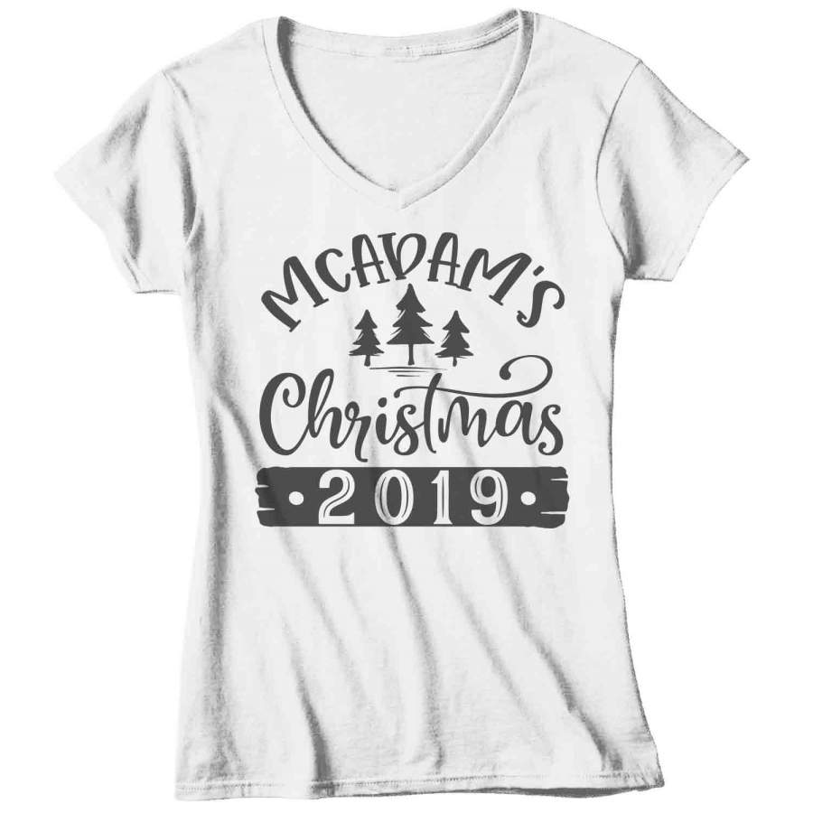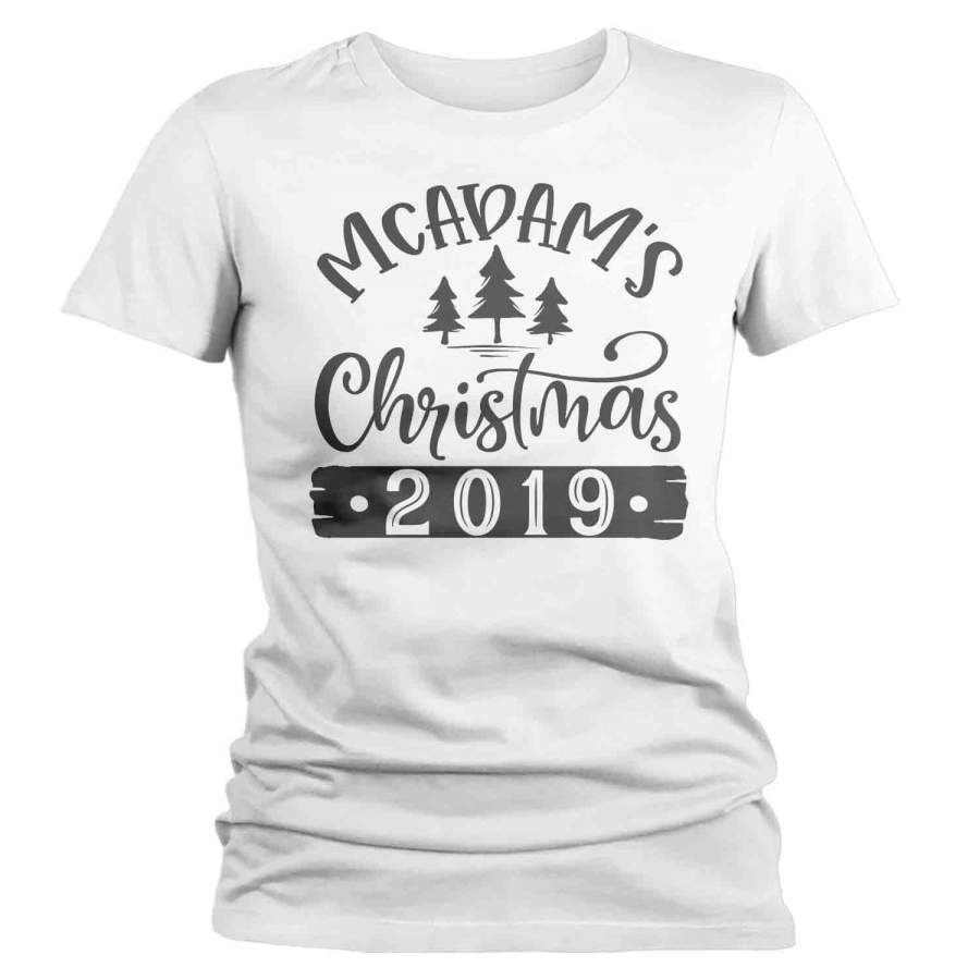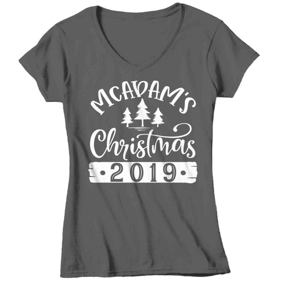 Women’s Personalized Christmas Shirt Custom Christmas Tree Shirt Cute Matching Christmas Shirts Pine Trees Christmas Pajama Shirt