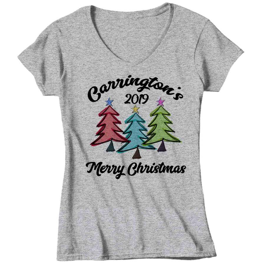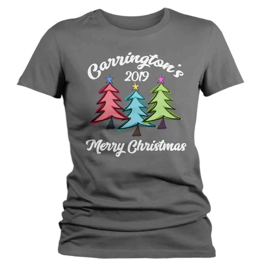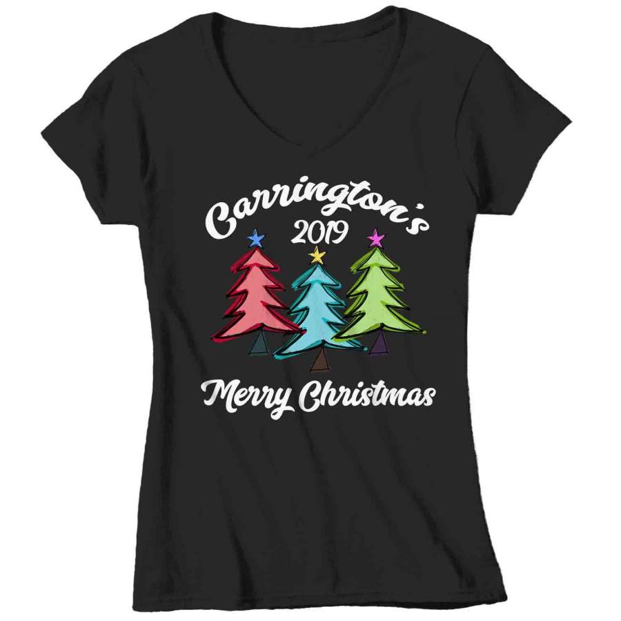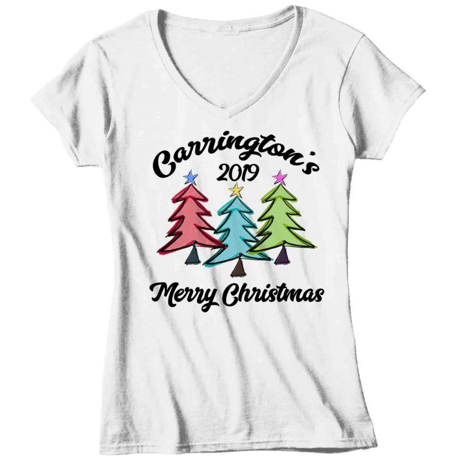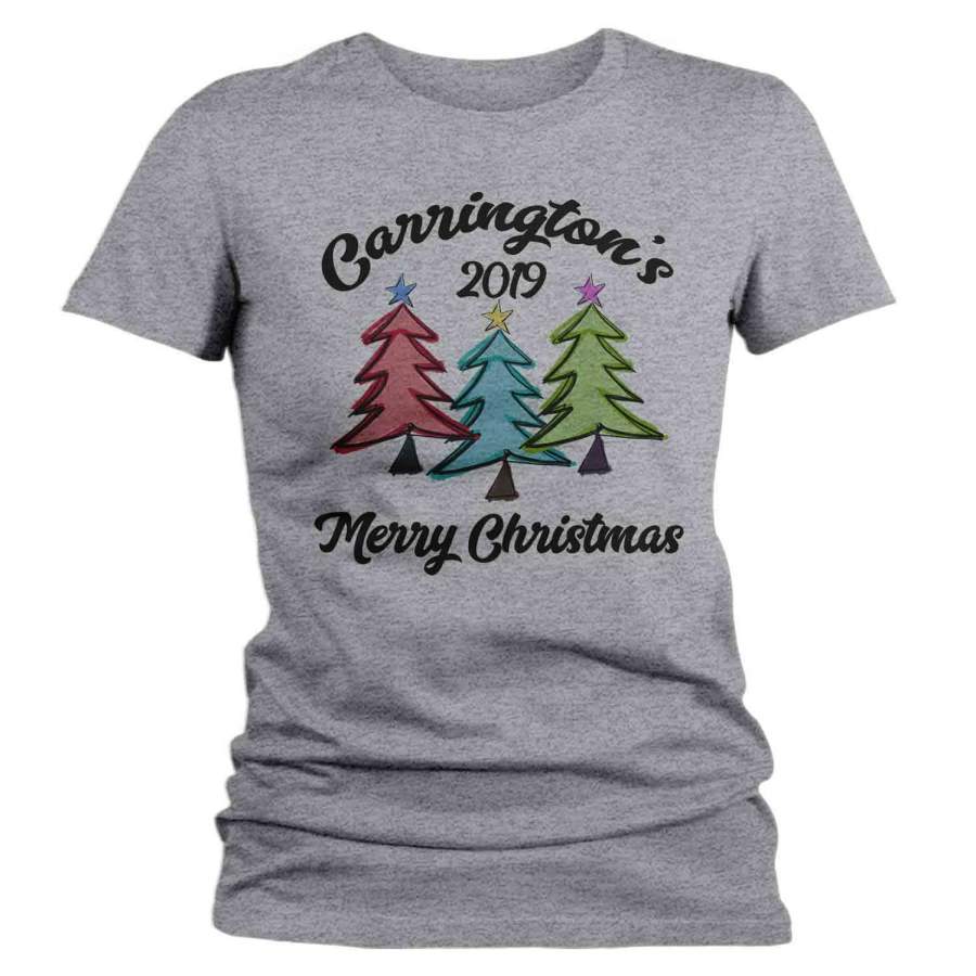 Women’s Personalized Christmas Shirt Custom Family Christmas Tree Shirt Cute Matching Christmas Shirts Trees Christmas Pajama Shirt