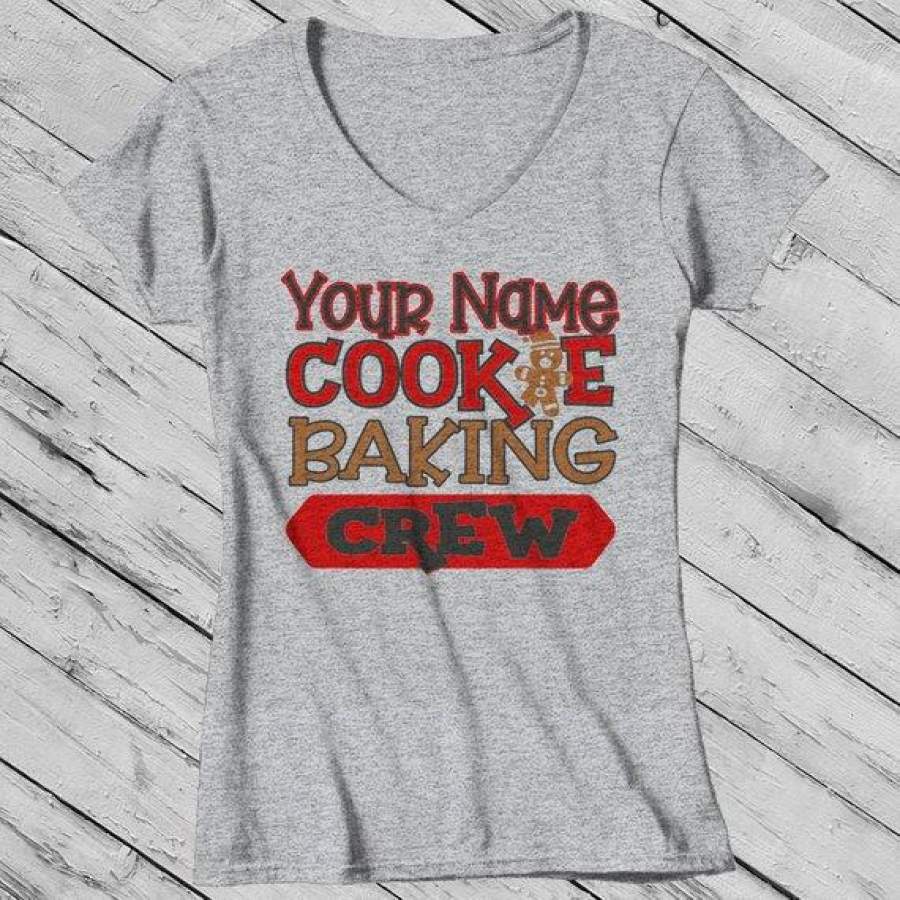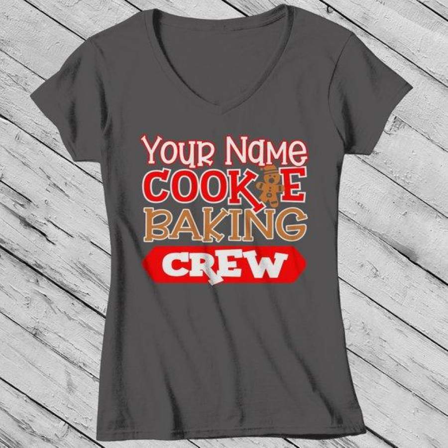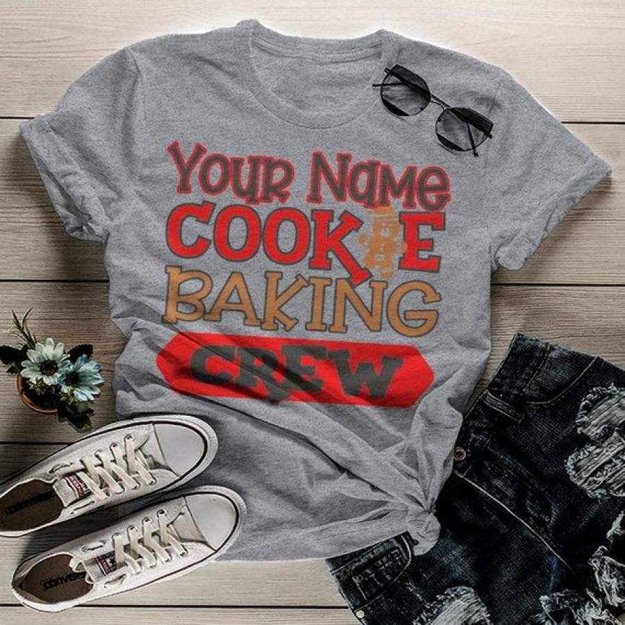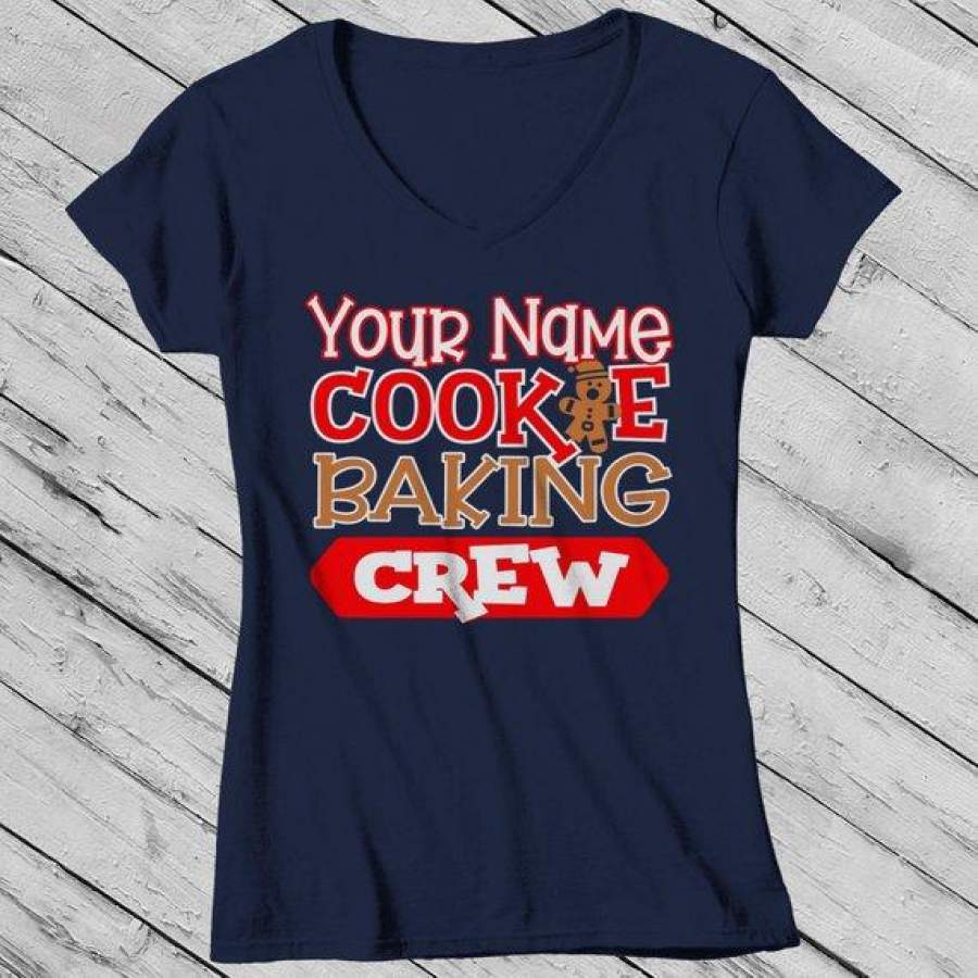 Women’s Personalized Christmas T Shirt Cookie Baking Crew Matching Xmas Outfit Custom Graphic Tee