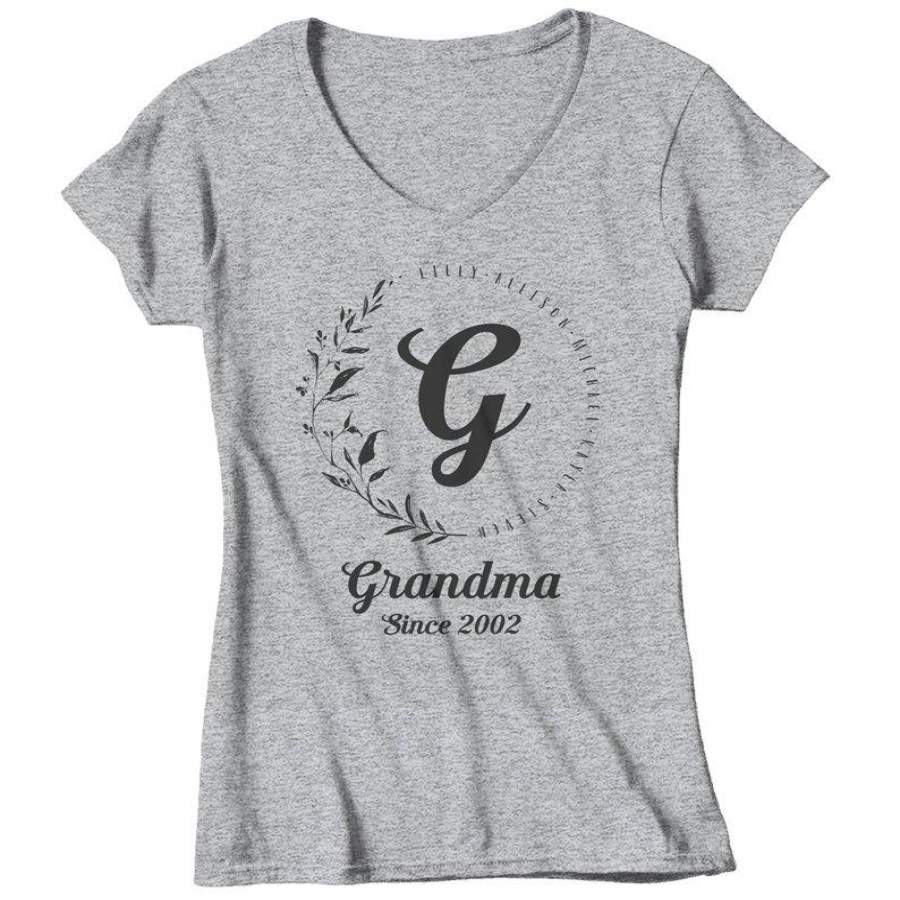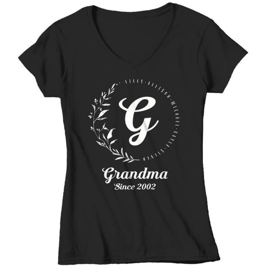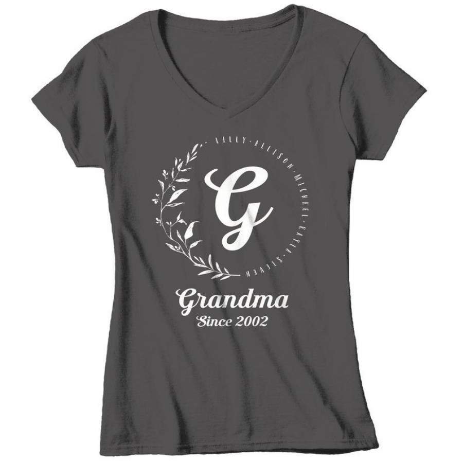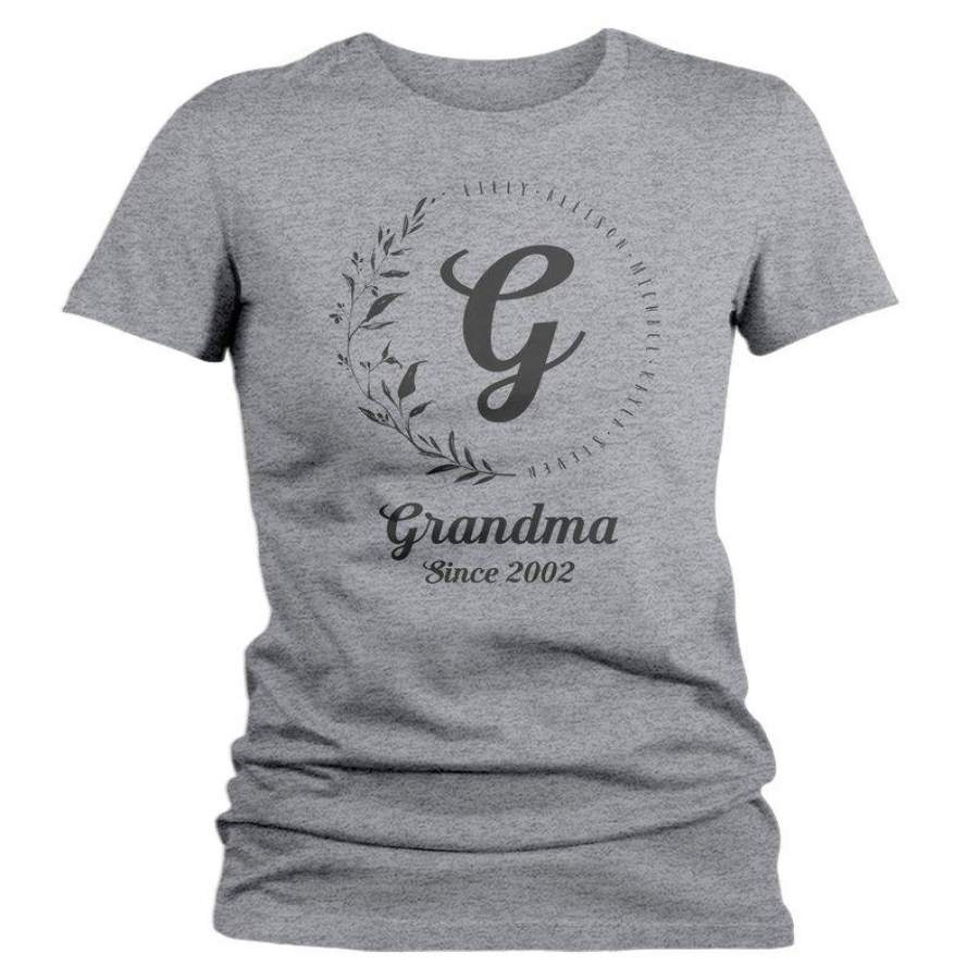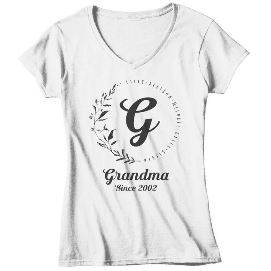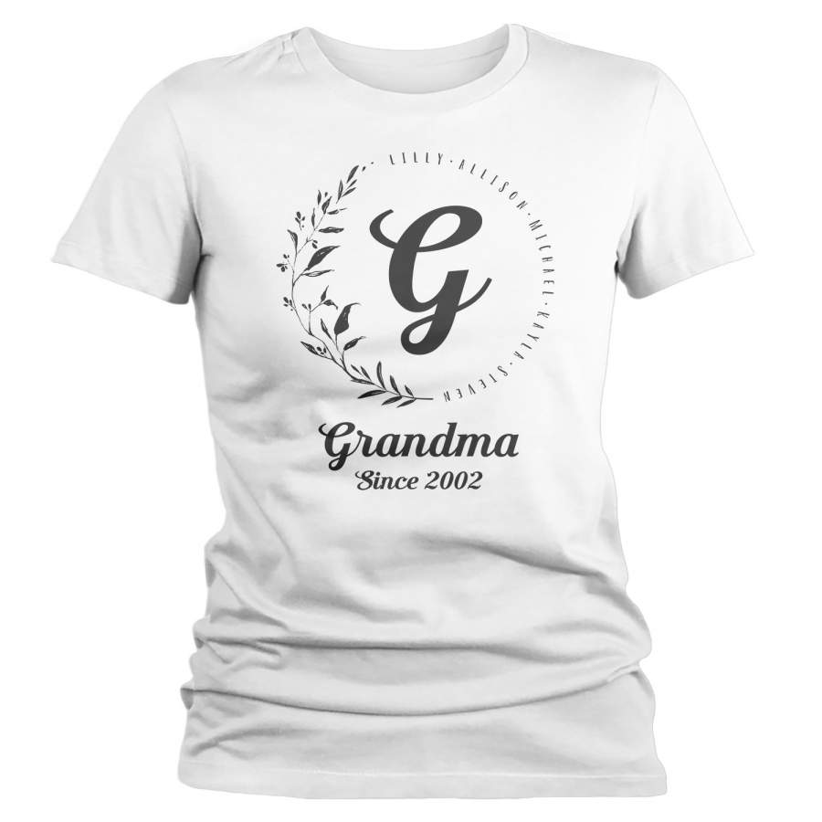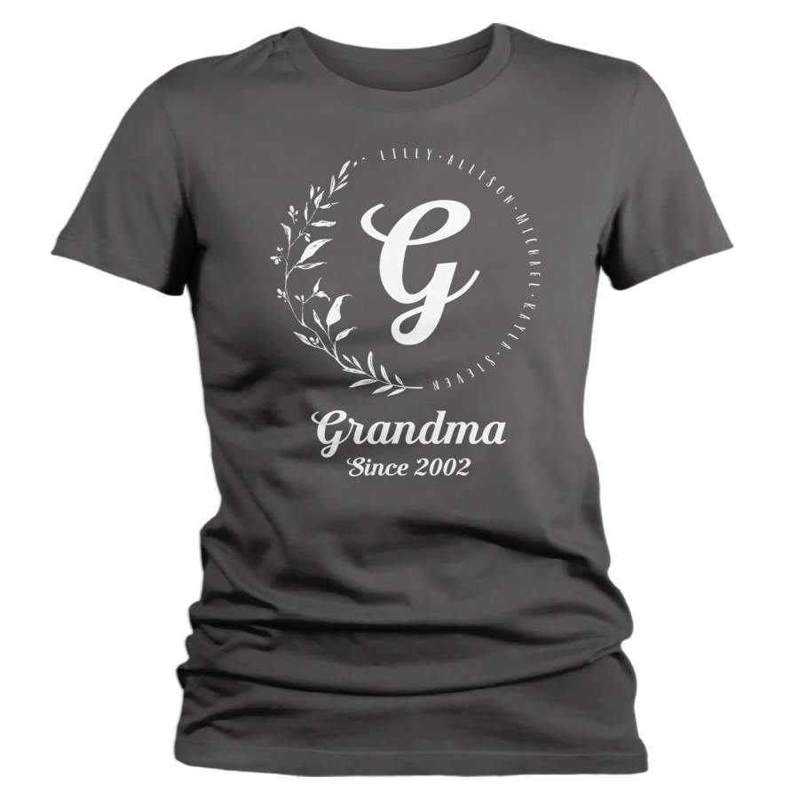 Women’s Personalized Grandma T-Shirt Monogram Wreath Grandma Shirts Names Grandchildren Gift Idea Mother’s Day