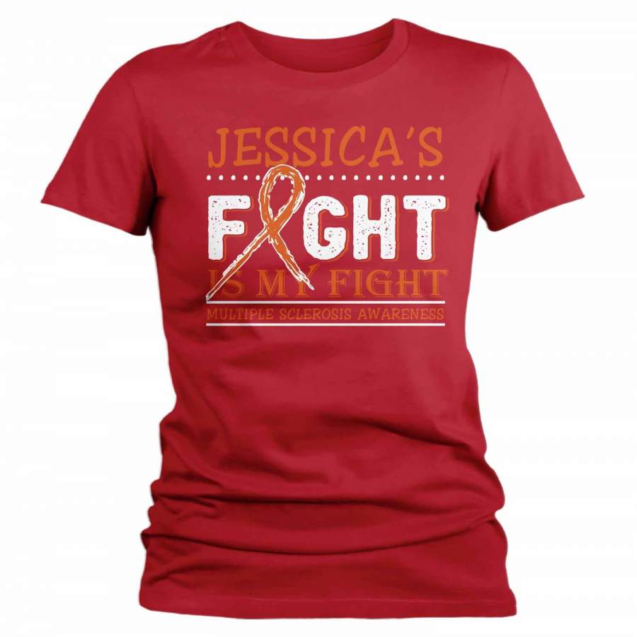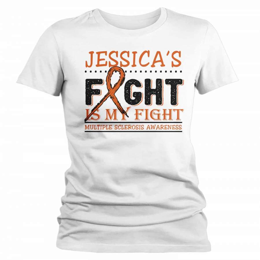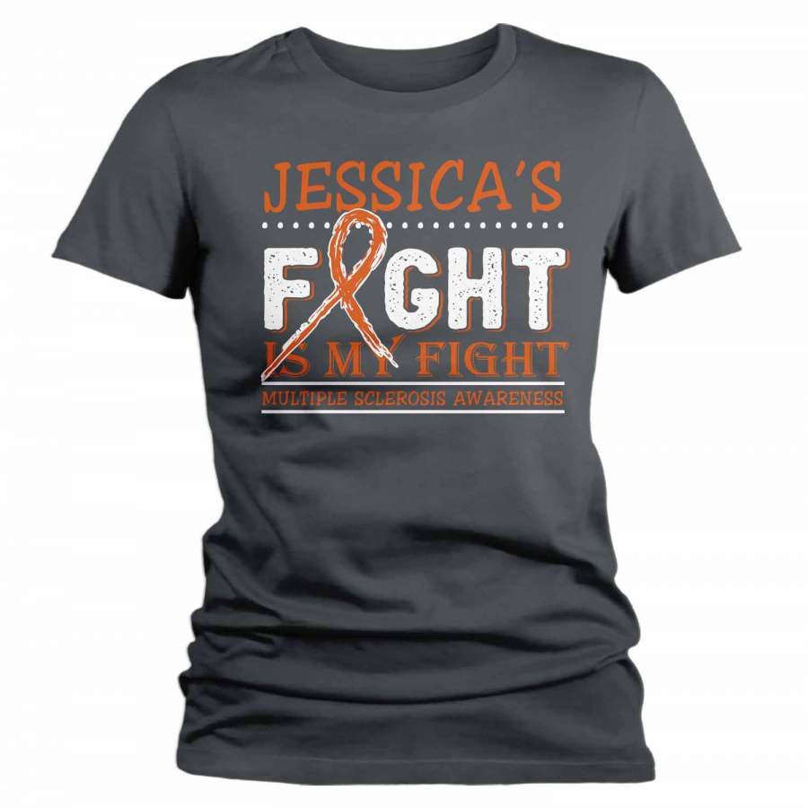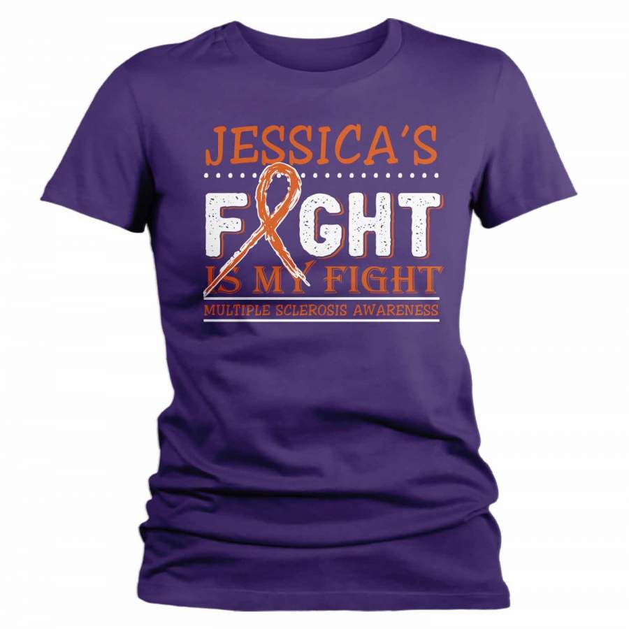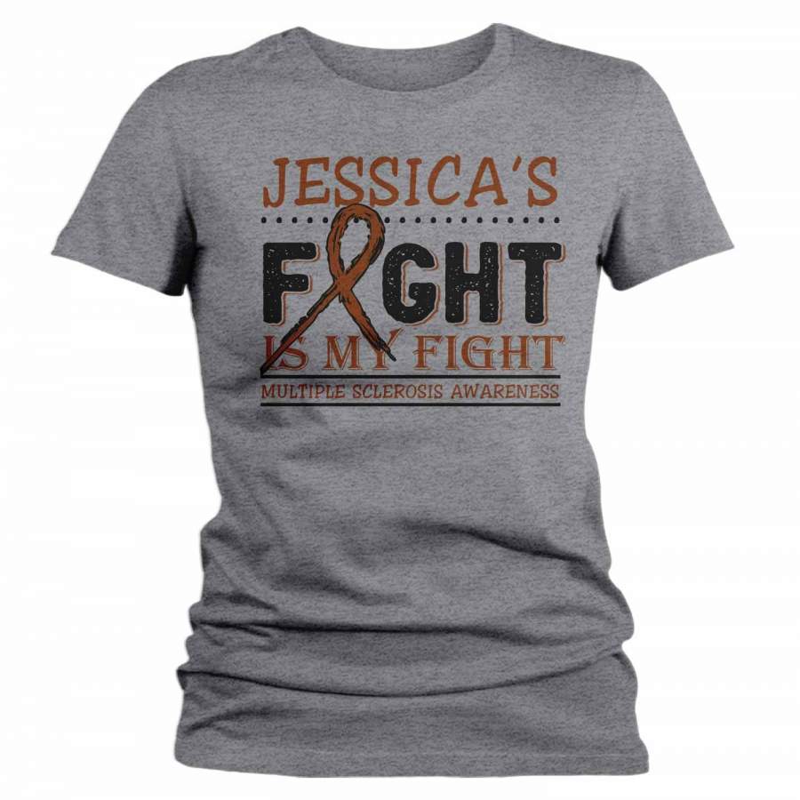 Women’s Personalized Multiple Sclerosis T-Shirt Fight Is My Fight Awareness Shirts MS Team Custom Shirts Name Tee