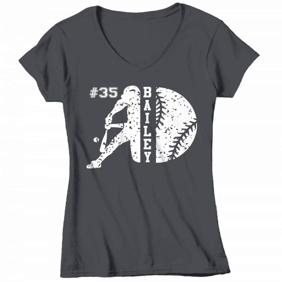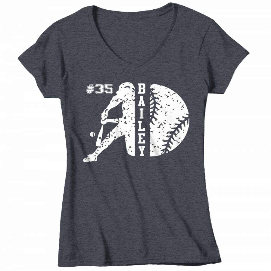 Women’s V-Neck Personalized Baseball T Shirt Custom Baseball Shirts Baseball Mom T Shirt Personalized Softball Shirts