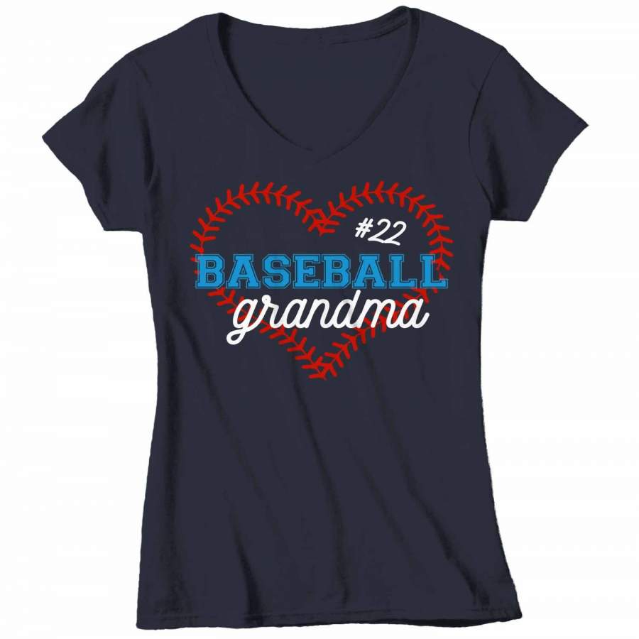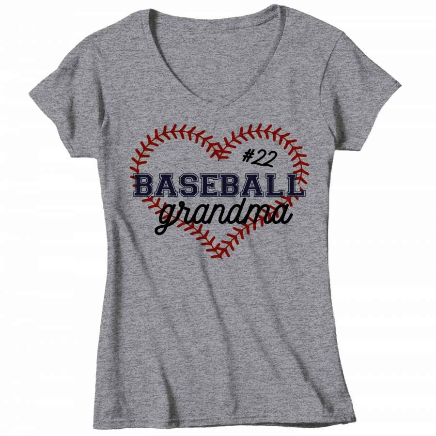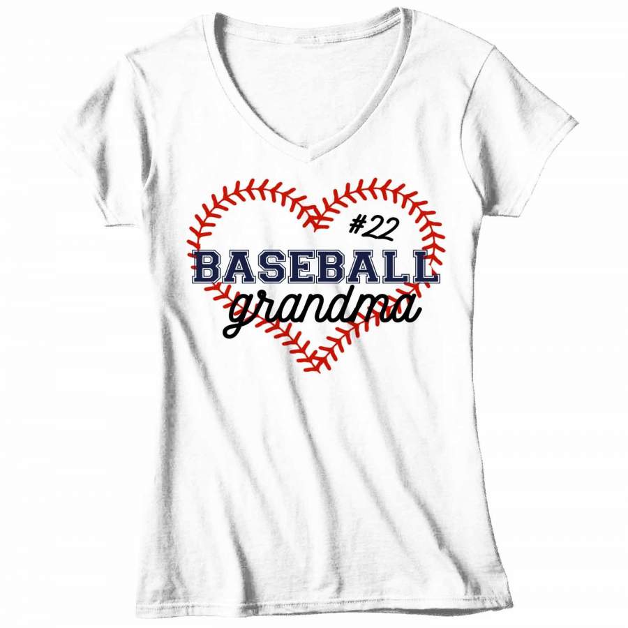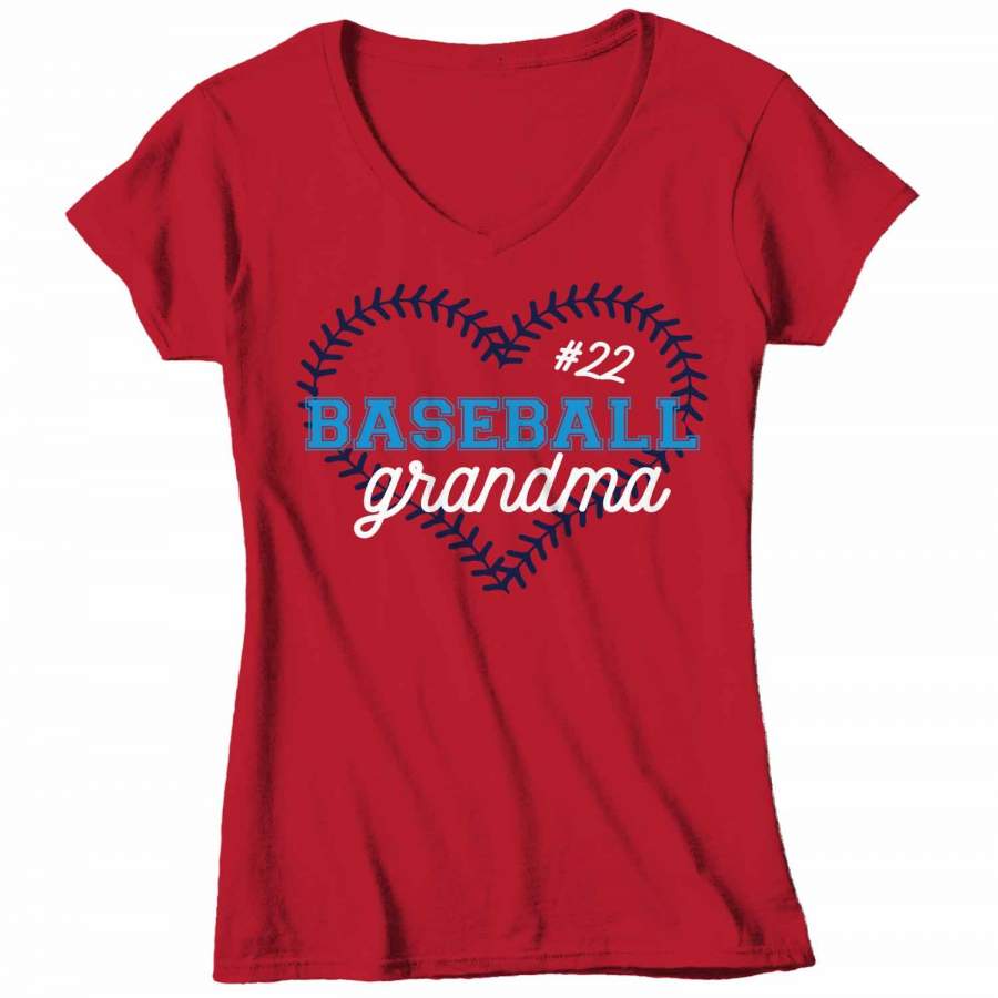 Women’sV-Neck Personalized Baseball T Shirt Personalized Baseball Shirt Custom Baseball Heart Shirt Baseball Grandma Mom Shirt