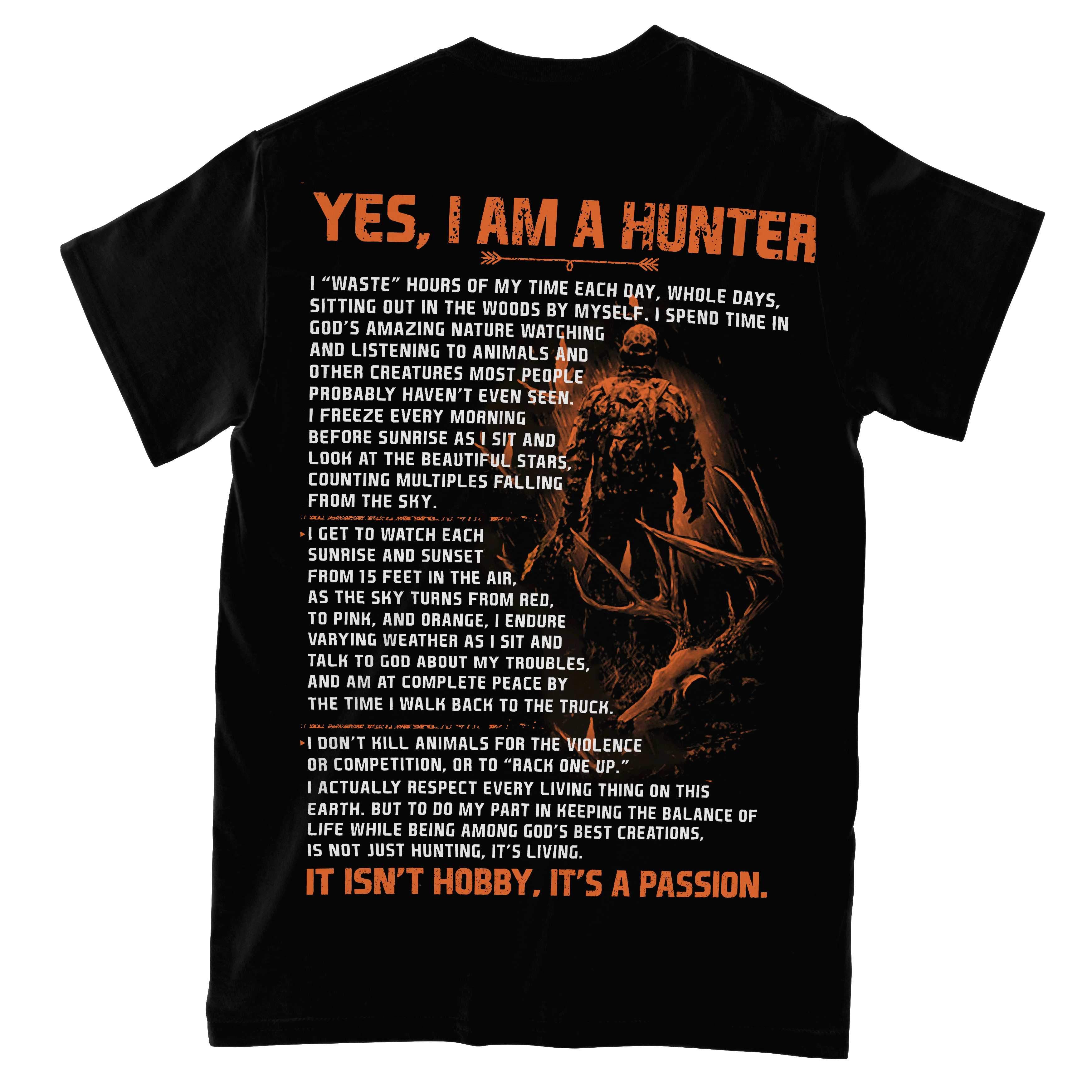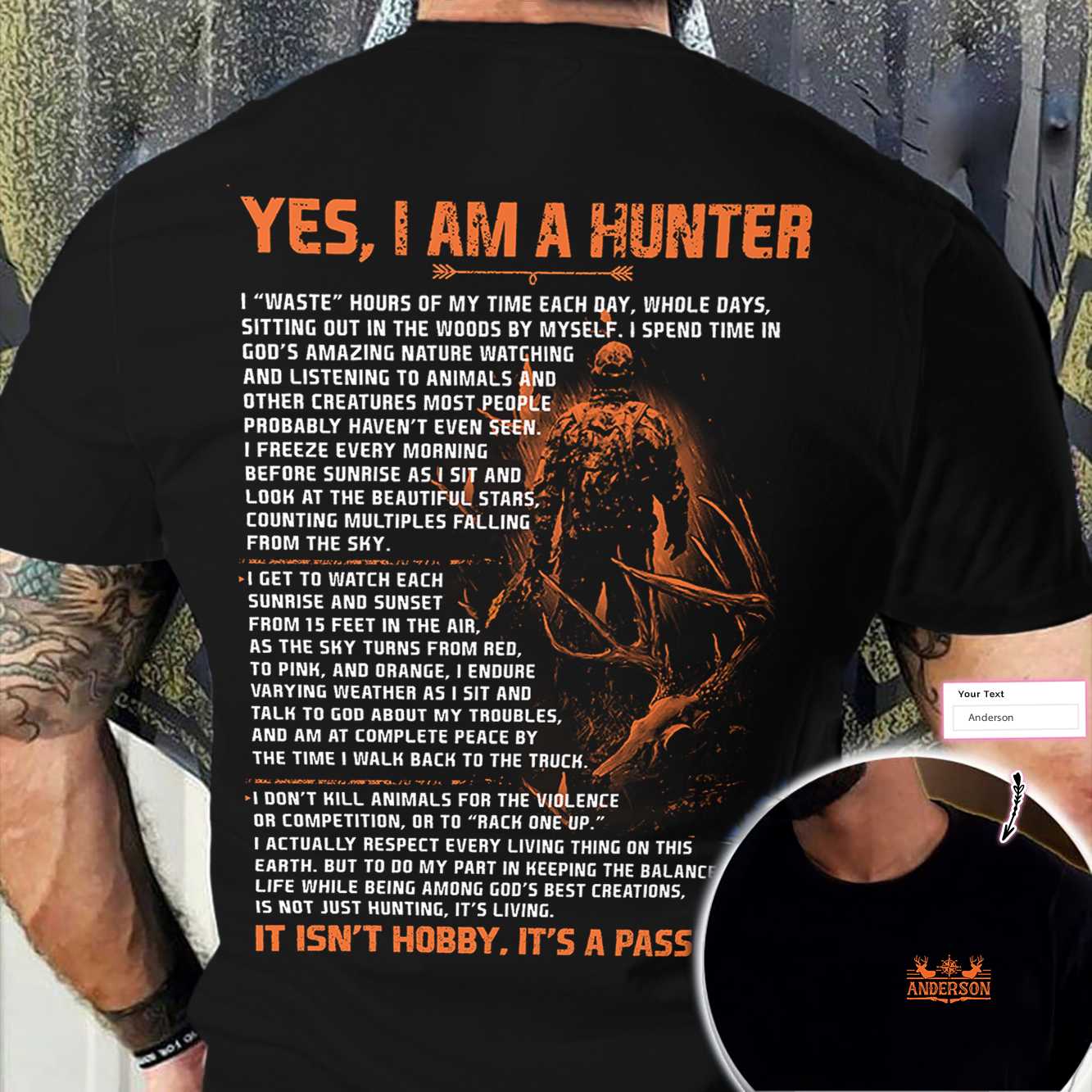 Yes I Am A Hunter Custom All Over Print T-Shirt, Personalized Black Hunting Shirt For Men
