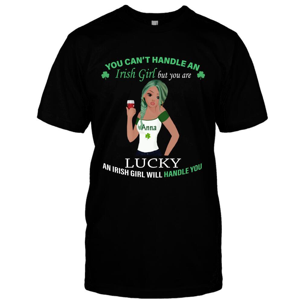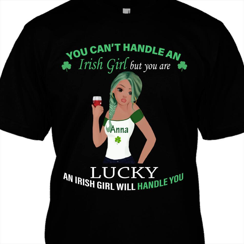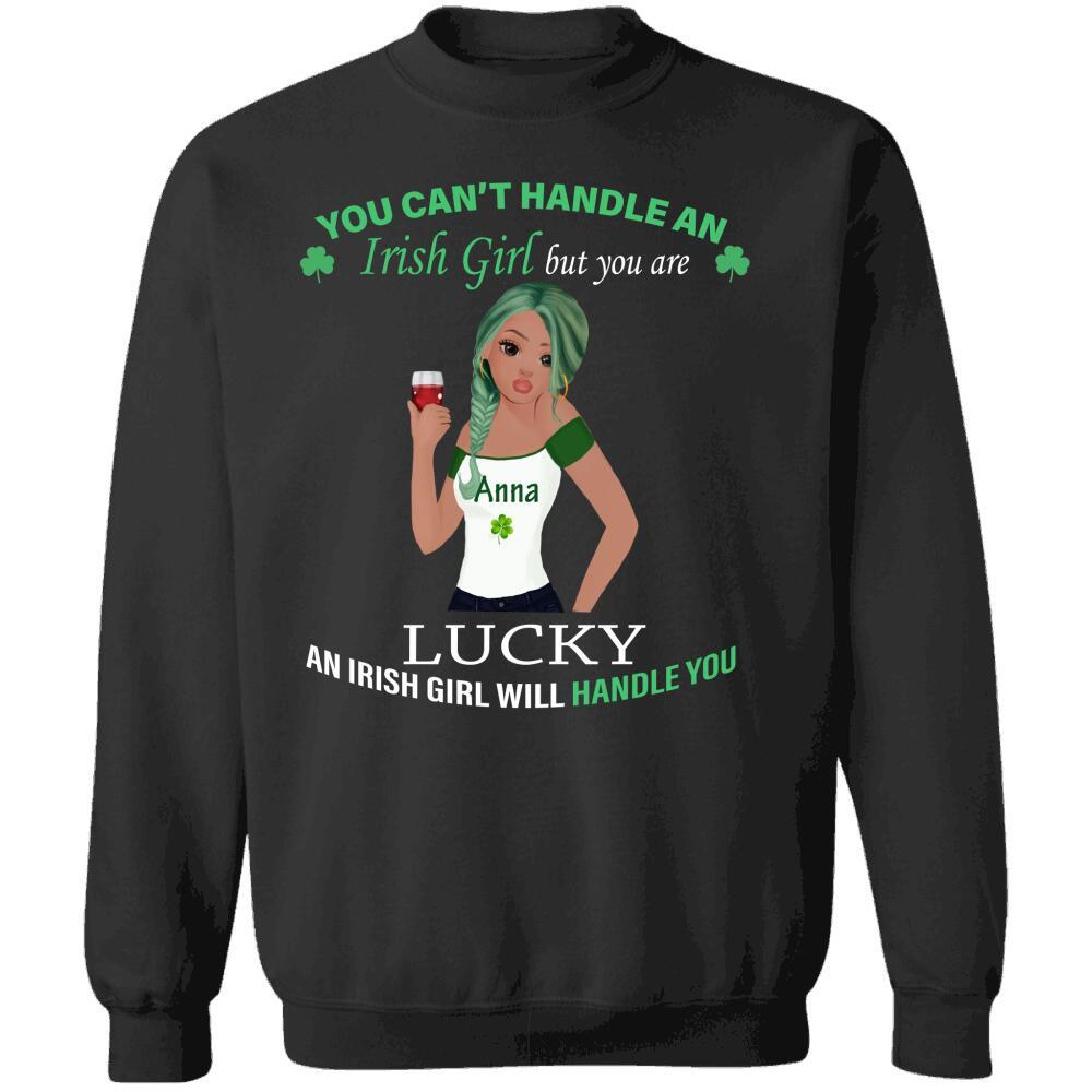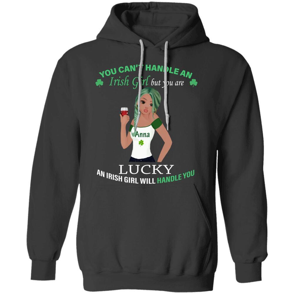 You Can’t Handle An Irish Girl St Patrick Day Shamrock Custom Girl’s Look & Name Personalized T-shirt Hoodie Sweatshirt